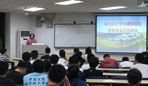 为切实做好暑期留校学生的安全管理工作,维护校园的安全与稳定,航空航天学院在7月9日晚7点30在科教南楼206举行暑期留校学生安全工...