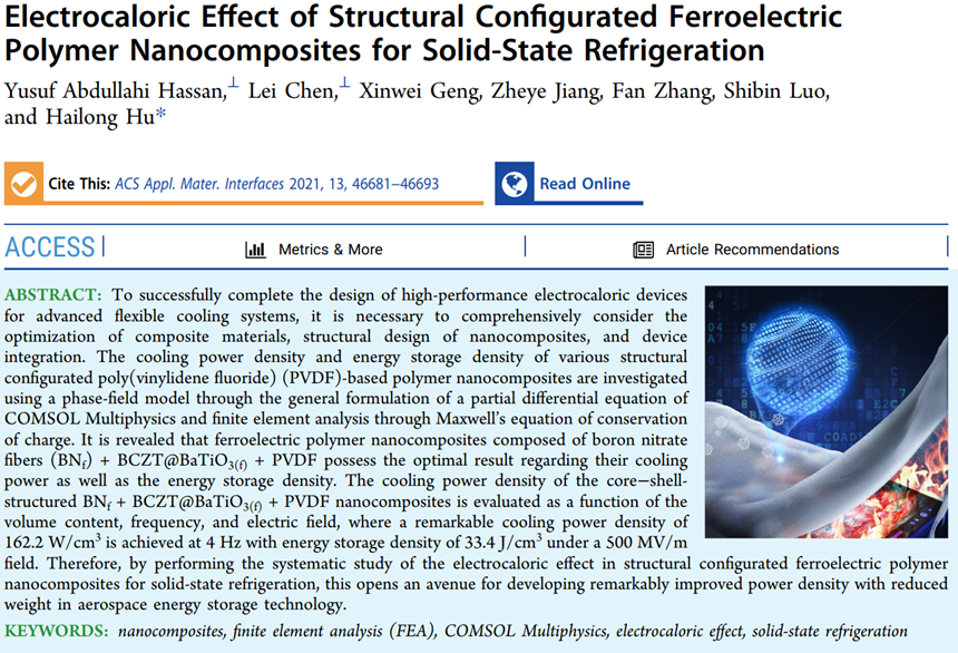 近日,我院本科生陈雷和留学生Yusuf合作开展的电卡固态制冷研究,共同作为第一作者以“Electrocaloric Effect of Structural Config...