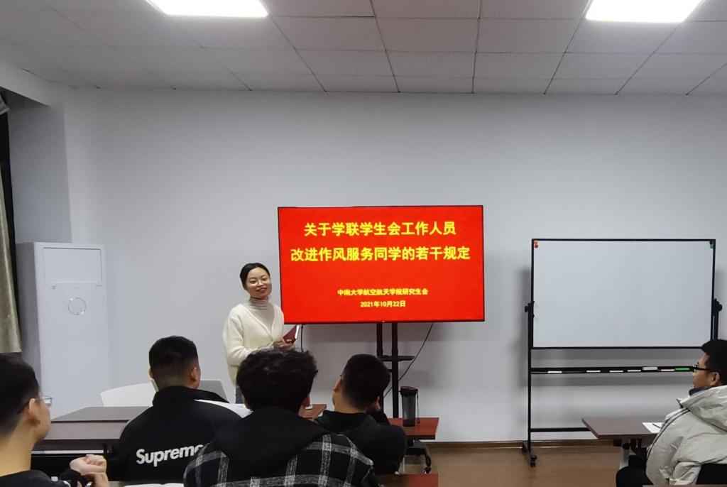 2021年10月22日19:00,航空航天学院研究生会于升华后楼702组织开展全国学联二十七大会议精神及《关于学校学生会工作人员改进作风服...