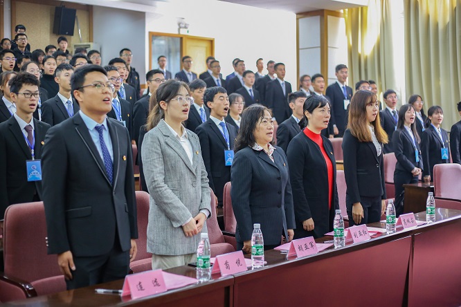最后,参加会议的全体成员一起奏唱团歌,壮丽的事业,激励着我们继往开来,歌声彰显了大家团结一心,奋勇向前的决心,也标志着大会圆满闭幕。结束之后,领导老师和团员代表于升华楼前合影留念。