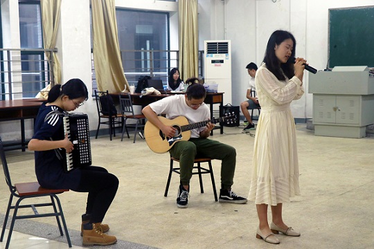 彩排正式开始前,现场工作人员有条不紊调试现场音响话筒等设备、准备彩排所需道具、与各节目负责人交接表演等事宜。本次共有11个节目参加,覆盖歌曲、舞蹈、快板、舞台剧等多种形式。其中,朱国庆同学带来独唱《贝加尔湖畔》,加入了手风琴和吉他伴奏;舞台剧《钱学森》气势恢宏带大家领略英雄风采,激起爱国之心;探控1601班准备的快板节目《航院人,航院情》,倾情演绎了航院师生深厚的感情;航工1501班带来了古典扇子舞,背景声和配乐、歌曲和表演让节目更赏心悦目。航院学生原创的“藏头”歌,加上吉他伴奏,展现了航院的独特风姿。