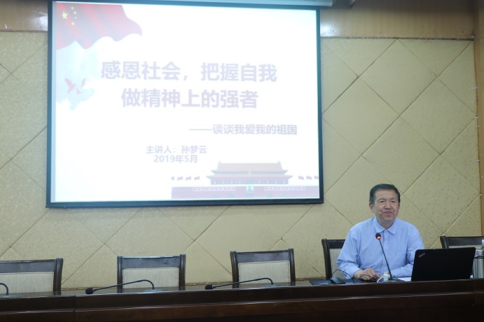 2019年5月30日,航空航天学院特邀学院关工委常务副主任孙梦云副教授,在校本部升华楼报告厅作题为“感恩社会,把握自我,做精神上的强者——谈谈我爱我的祖国”的专题报告会。学院党总支刘亚红副书记出席,全院党员和入党积极分子到场聆听。报告会由学院辅导员高佩茹主持。