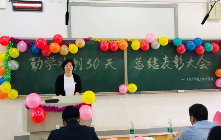 航空航天学院高度重视学风建设,为了帮助学生树立新学期学习目标,营造浓厚学习氛围,刘亚红副书记先总结上学期各年级的学习成绩、评奖评优情况,分析学风建设的现状,强调班级学风建设精细化管理的具体措施,希望全体学生总结经验,明确目标,收拢身心,做好规划,鼓足干劲,勤奋学习,把航天报国之志化为实际行动,成为航天梦的追梦者和奋斗者。