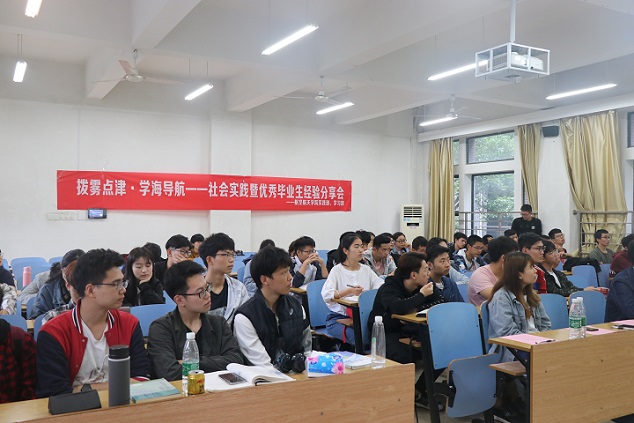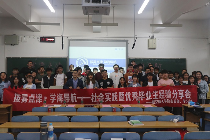 5月15日下午,航空航天学院在新校区B座201教室举办了“拨雾迷津,学海导航”社会实践暨优秀毕业生经验分享会。活动邀请了15级部分优秀同学以及有出色社会实践经历的同学,为大家分享关于考研、保研、就业和社会实践等方面的经验。