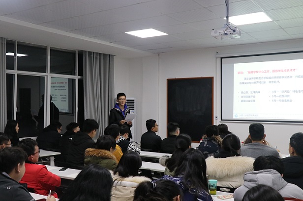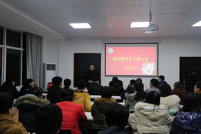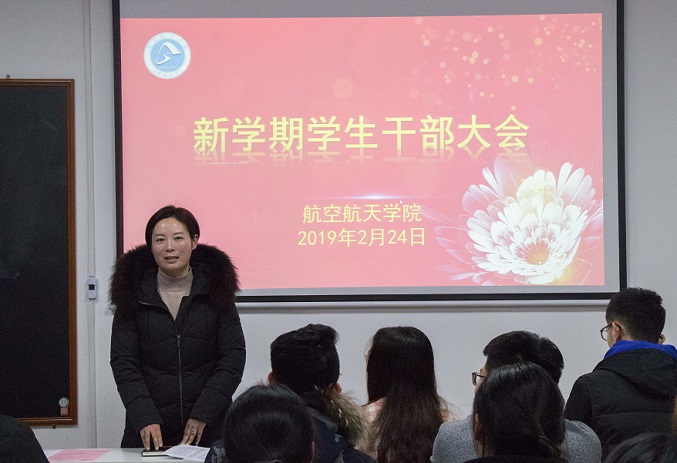 2019年寒假结束,同学们纷纷返校,投入新学期的学习和工作中。为了能够以更加积极的精神状态开始新一学期的学习生活,2月24日晚上8点,航空航天学院在校本部升华后楼305教室召开了新学期学生干部大会,学院新任党总支副书记刘亚红、二位辅导员连选、高佩茹出席了此次会议,航空航天学院团委学生会、研究生会和各班的主要学生干部均参加了此次大会,大会由连选老师主持。