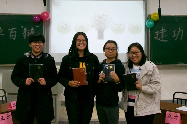 末了,由辩手喻辰璐等同学组成的“我们说什么都队”突破重围一举夺得冠军,而由辩手王昊达等同学组成的“雄辩队”也毫不示弱,喜提第二。另外两支队伍也用自己的努力赢得了第三第四名的佳绩与大家的掌声和喝彩。