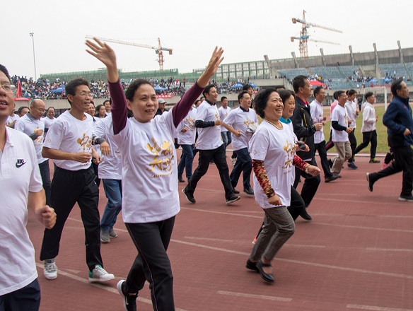 开幕式上,踏着矫健的步伐,一抹荧光绿色立时映入眼帘。看,那是中南大学航空航天学院的同学们正阔步向我们走来。整齐划一的方队,振臂挥舞的宇航员,亦或是气宇轩昂的气模飞机,无不自信地向外传递出朝气蓬勃的信号。胡亚军书记和邓栗副书记参与的开场健身跑更是一度燃起了大家的运动激情。