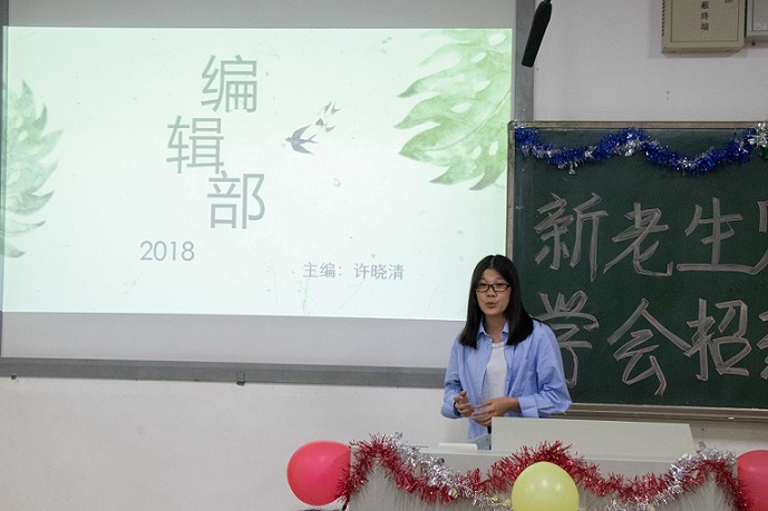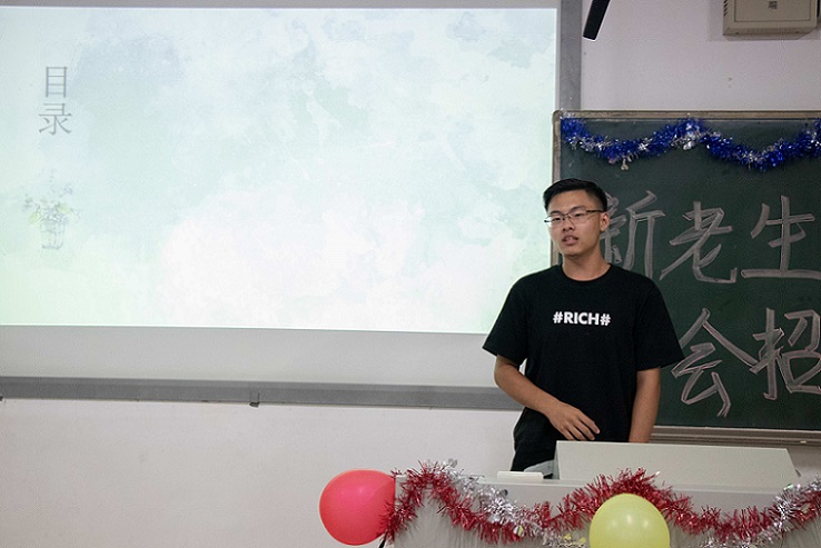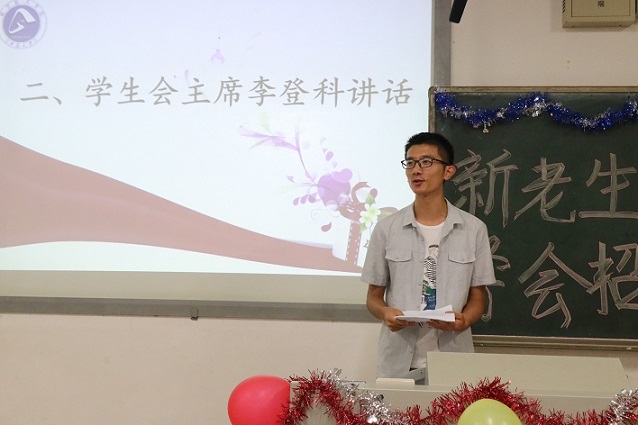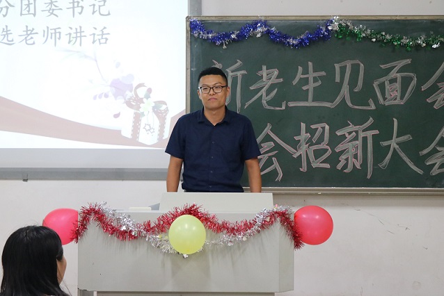 首先,由辅导员连选老师讲话,他首先对各位到场的18级新生们表示欢迎,希望在接下来各位学长学姐的宣讲交流中,端正自己的态度,做出最适合自己的选择,在学生工作中锻炼自己的能力。