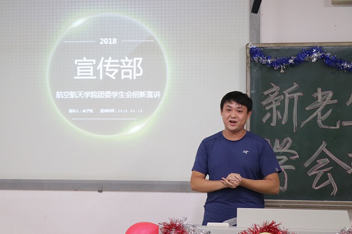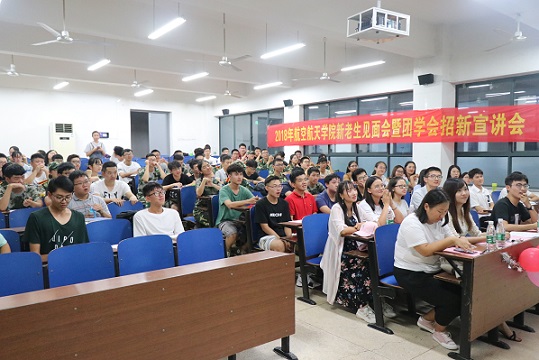 为了让18级新生尽快适应大学生活,融入中南,融入航空航天学院这个大家庭。9月13日晚上7点,航空航天学院在新校区A座119教室举行了新老生见面会暨团学会招新宣讲会。参加此次大会的有辅导员连选老师、高佩茹老师,两位新生助理班导师张媛同学和吕权杰同学,大二大三团委学生会全体成员及18级全体新生,此次大会由吴煌亮主持。