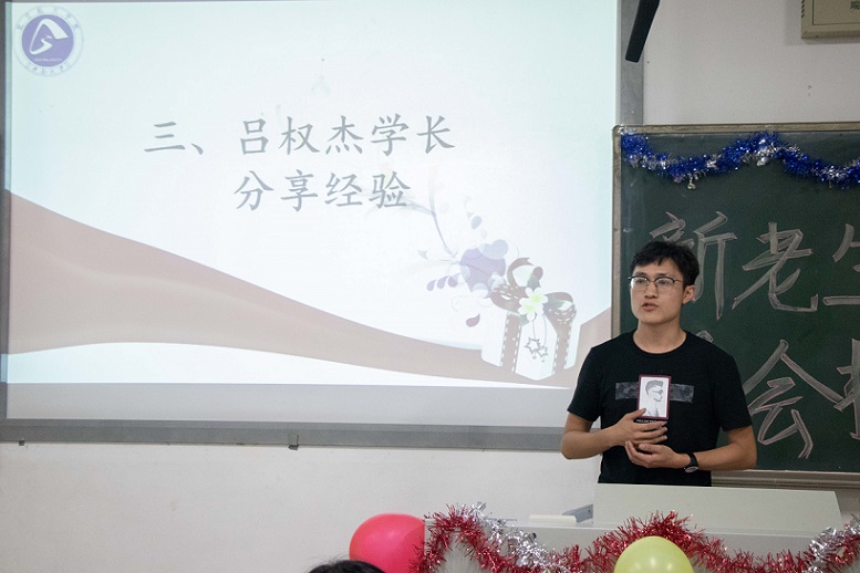 之后,团委学生会主席李登科为各位新生介绍了自己在团学会中的工作经历,并鼓励各位新生积极踊跃加入团委学生会,多多学习,为自己的大学生话增添更多的色彩。两位助理班导师也分享了自己的学习和工作经验,吕权杰同学希望各位新生养成良好的学习习惯,树立坚定目标,在做学生工作的同时不要落下功课,张媛学姐从三个词出发分析了做好学生工作的几个必需素质,要胆大心细,做一件事就要做到最好,不要违心。新生们在几位优秀学长学姐的话语中收获了许多,现场爆发出一阵阵雷鸣般的掌声。