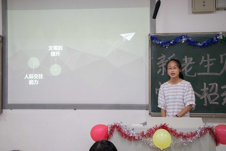 接下来,团委学生会各部门的部长分别上台发表招新宣讲,他们向新生们介绍了各部门的主要职能及招新要求,几位部长优秀的表现也让新生们暗暗坚定了加入团委学生会的信念。
