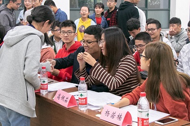 虽然天气不尽如人意,阴雨绵绵,寒风阵阵,但同学们都是热情饱满的,不仅布置会场以及现场技术人员早早到场做准备,其他同学也是有很多提前一小时就到了现场。这次共有五支队伍参赛,以大一新生为主,每支队伍都做了用心的准备,开始前十分钟,同学们还在做最后的确认工作,到处是大家忙碌的身影。