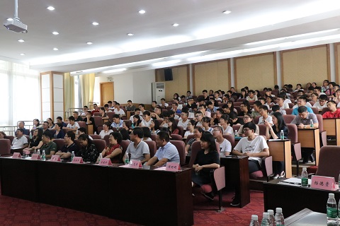 9月8日上午10点30分,航空航天学院在校本部升华前楼101报告厅召开了2018级新生及家长见面会。出席此次大会的领导有航空航天学院党总支书记胡亚军老师,党总支副书记邓栗老师,二位副院长杏建军教授、梁步阁教授,复合材料系主任岳建岭教授,探测制导与控制技术系主任赵党军教授,办公室主任周明娟老师,二位新生班导师杨德贵教授和廖宇新老师,辅导员连选老师、高佩茹老师以及二位助理班导师张媛同学和吕权杰同学。2018级全体本科生新生、研究生新生和50余名新生家长参加了会议。辅导员高佩茹老师主持了此次会议。