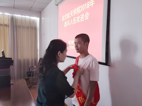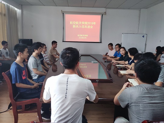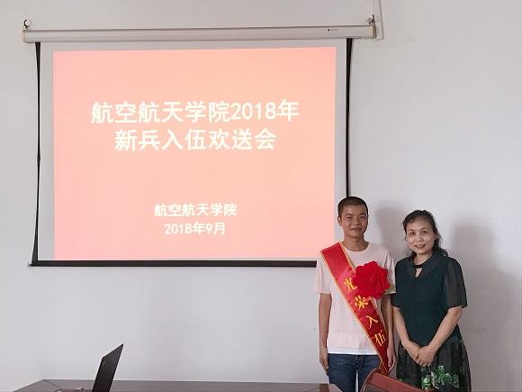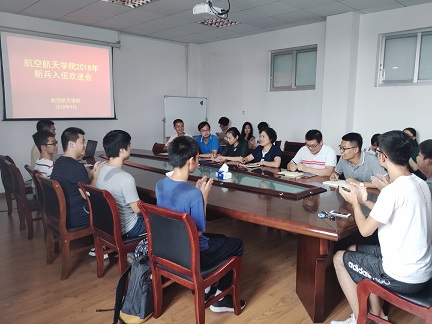 2018年9月,我院再次迎来了新兵入伍的光荣时刻。9月14日,在新兵黄加雄即将离校之际,航空航天学院在学院会议室为他组织了入伍欢送会。航空航天学院党总支书记胡亚军、副书记邓栗,航空航天学院副院长杏建军,薛晓鹏老师以及辅导员连选出席了此次会议,航空航天工程1601班全体同学也到场相送。
