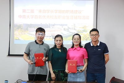 校友的求学经历、成长之路、工作业绩、和奋斗精神等,是在校学生走好人生路最深动、最亲切、最令人信服的教科书。为此,学校举办了第二届“来自学长学姐的职场建议”中南大学百名优秀校友职业生涯辅导活动,我院邀请到了2015届毕业生杨欢和2017届毕业生陈小辉为大家做报告,分享他们在校和求职期间的经验与故事。院党总支副书记邓栗,辅导员连选老师出席了座谈会。活动由连选老师主持,大一大二年级学生代表参加了这次活动。