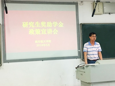 5月31日下午4点,航空航天学院在新校区A座119教室成功举办了考研动员大会暨奖助学金宣讲会。航空航天学院院长罗世彬,党总支副书记邓栗,副院长杏建军,副院长梁步阁,材料系主任岳建岭出席此次会议,共同指导考研相关事项。2014级、2015级、全体研究生参加了会议。会议由辅导员连选主持。