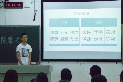 首先,团委学生会9个部门的部长、副部长各自作部门工作总结报告。他们各自介绍了这一年来部门内的工作概况,进行了各自部门工作成果与收获的展示,并对今后的工作提出了自己的展望和设想,各位部长表示这一年来的收获离不开各位团学会成员的团结互助,离不开干事们的辛勤付出,并对全体团学会成员表示感谢。与此同时,他们也总结了工作中的一些问题和不足,提出了一些创新点,希望接下来的新部长们能取其精华,弃其糟粕,满怀信心地创造学院学生工作的辉煌。