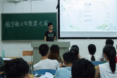 6月13日下午2点,航空航天学院第七届团委学生会总结大会暨第八届主席团竞选大会在新校区B座103举行,航空航天学院分团委书记连选老师,辅导员高佩茹老师及团委学生会全体成员参加了此次大会,大会由办公室干事徐文财主持。