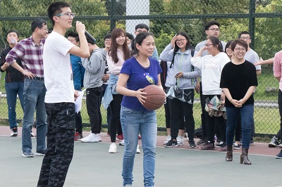 在第一阶段的运球中,虽然参赛人员均为女生,但她们个个身手矫健,奋勇争先,完美地诠释了速度与激情的碰撞,此后的“摸石过河”比赛中,比赛规则的独特令老师和同学有些手忙脚乱,但是他们很快地克服了这一点,体现出惊人的默契,以极快的速度将比赛推向下一个项目——背夹球,虽然在夹球跑的过程中,有的球掉了下来,但选手们毫不气馁,迅速捡起球继续比赛,比赛进行到最后的原地投篮,那些背负着队伍荣誉的投篮手们个个全身贯注,每一次的进球都会引爆全场。在比赛全程中,观众络绎不绝,加油声、掌声此起彼伏,比赛的气氛达到高潮。