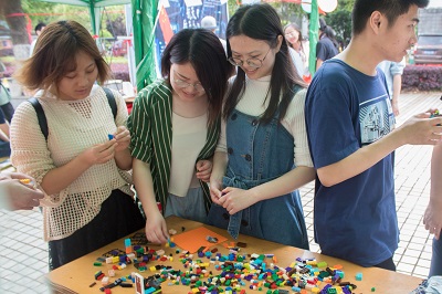本次活动以展览和小游戏的形式进行。展览方面,学院邀请了航模协会的同学,来进行航模展示,并有研究生的无人机表演和航空航天知识的讲解。在游戏方面,共有“有奖知识问答”、“飞机积木拼装”和“纸飞机进桶”三个游戏,参与者每完成一个游戏就可以获得木飞机模型、航院特制钥匙链等小奖品,并有机会抽中VR眼镜、无人机等奖品。丰富的活动内容让参与同学们在游戏中获取了航天知识。活动持续了三个小时,航空院准备的奖品已发完告罄,但参与者们仍络绎不绝,沉浸在活动的乐趣中。