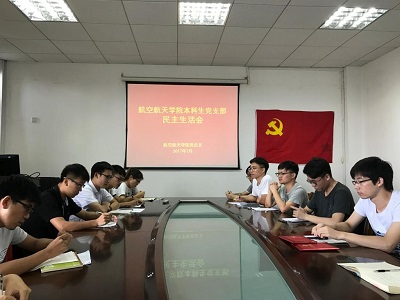 7月16日下午3点,航空航天学院本科生党支部在升华后楼6楼会议室召开关于巡视整改的专题组织生活会,就学生党员自身存在的问题展开批评和自我批评。航空航天学院党总支副书记邓栗,副院长杏建军出席会议,全体本科生党员参加了此次会议,会议由本科生党支部书记连选老师主持。