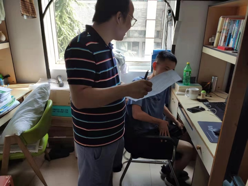 班导师“面对面”辅导。各班级班导师分别前往学生宿舍,与返校学生面对面交流。了解学生思想动态、身体状况、假期学习情况;提醒同学保持良好卫生习惯,勤洗手、勤通风、勤消毒,按时健康打卡;鼓励大家做好开学准备,制定学习计划,多与学业导师、指导教师沟通请教,再次向返校学生送去学院的真诚关爱和诚挚问候。