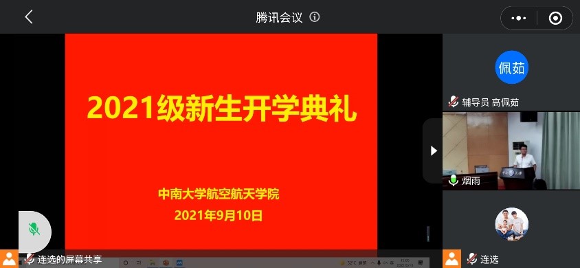 9月10日下午18:30,航空航天学院2021级新生开学典礼在校本部升华前楼101报告厅正式举行,线上“腾讯会议”同步进行。航空航天学院党总支书记胡亚军,院长罗世彬,副书记刘亚红,副院长梁步阁,系主任,教授代表,2021级新生班导师,辅导员,全体2021级本科生及研究生新生参加了典礼。大会由刘亚红副书记主持。