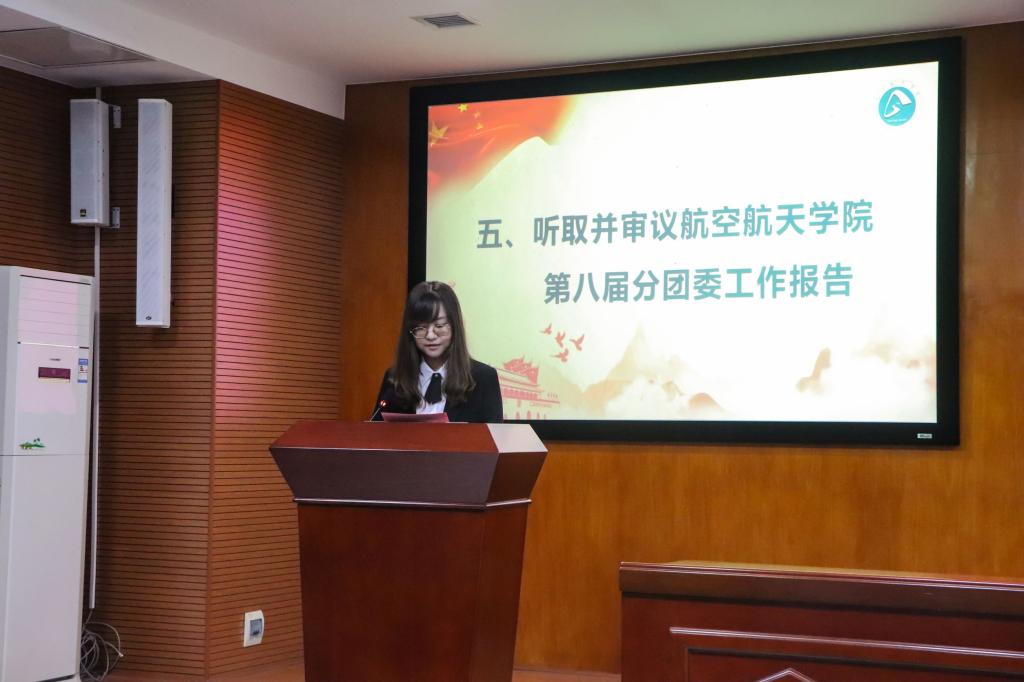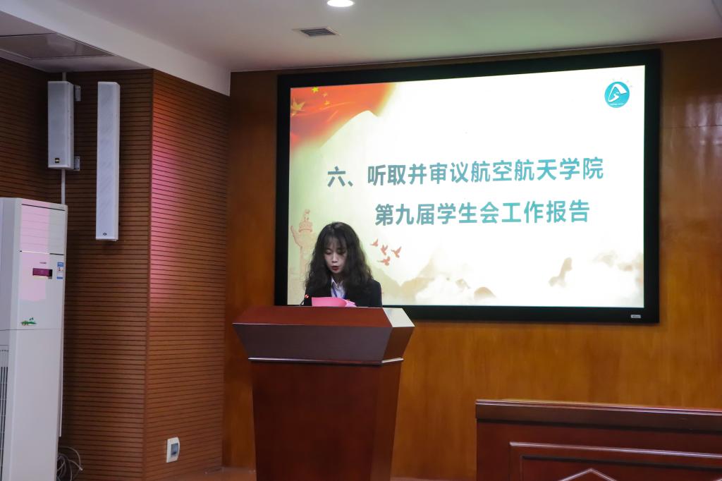 计票期间,大会听取并审议了航空航天学院分团委书记高佩茹老师作第八届分团委工作报告、航空航天学院本科生代表雷椿尧同学作第九届学生会工作报告、航空航天学院研究生代表赵思肖同学作第七届研究生会工作报告。