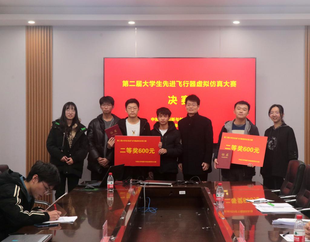 最后,杏建军副院长对大赛进行点评总结。他肯定了各队的出色表现,表达了学校对大赛的重视,并欢迎下次大赛能有更多其他学院的同学参与,促进学科间的交叉融合。主持人公布中南大学第二届大学生先进飞行器虚拟仿真大赛各参赛作品的最终成绩与获奖名次:天问队得分172.1分荣获一等奖;EutVd麓麓飞行小队得分171分、褐雨燕队得分164,均获二等奖;四位评委老师为他们颁发了证书与奖金。