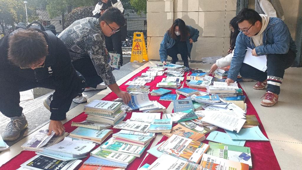 活动当天,同学们热情高涨,努力的在书籍的“海洋”中寻觅;志愿者们在一旁为同学们答疑解惑,同时又耐心的整理书籍,方便更多同学寻找。一本本书中承载的是知识的力量、学长学姐对于同学们关爱和帮助,这种活动更是我们身为当代青年落实国家可持续发展政策的最好行动!