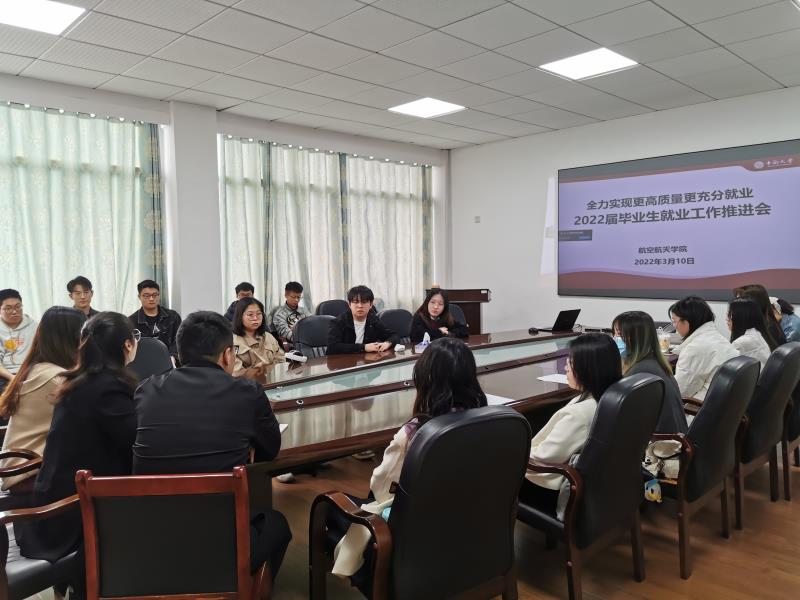 为确保学院2022届毕业生就业工作落实、落地、落细,全力实现更高质量更充分就业,3月10日上午10点,航空航天学院于6楼会议室召开2022届毕业生就业工作推进会,学院全体未落实就业去向的学生参加了会议。党总支副书记刘亚红、辅导员连选、高佩茹出席会议。