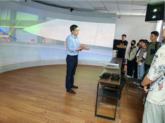 在机房,杏建军副院长结合卫星导航实验设备,生动地为同学们介绍了我国北斗卫星导航系统发展历程、构造原理、性能优势以及其战略意义;在认知实验室,运载火箭、各型导弹、人造卫星、空间站、无人机,罗世彬院长同刘俊老师一道,为同学们呈现了一场精彩纷呈的视听盛宴;在虚拟仿真实验室,同学们戴上3D眼镜,在科幻的世界里,身临其境地感受了一把遨游太空的乐趣;在科教楼负一层的实验室,同学们更是登上飞行模拟器,“飞”向蓝天,“真实”地领略到搏击长空、壮志凌云的酣畅淋漓。