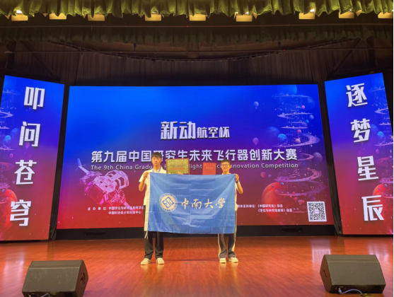 8月20至24日,“新动航空杯”第九届中国研究生未来飞行器创新大赛决赛在沈阳航空航天大学隆重举行。我院2支参赛队在激烈的角逐中,脱颖而出获得佳绩。由罗世彬教授和宋佳文老师指导的扬“栅”奇航队荣获全国总决赛一等奖,由廖俊老师指导的天际的开拓者队荣获全国总决赛三等奖,中南大学被评为大赛优秀组织单位。
