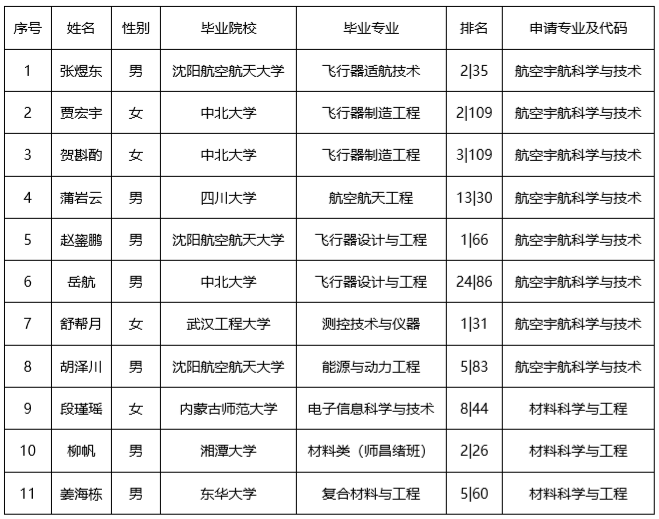 2019年中南大学航空航天学院暑期夏令营公示名单