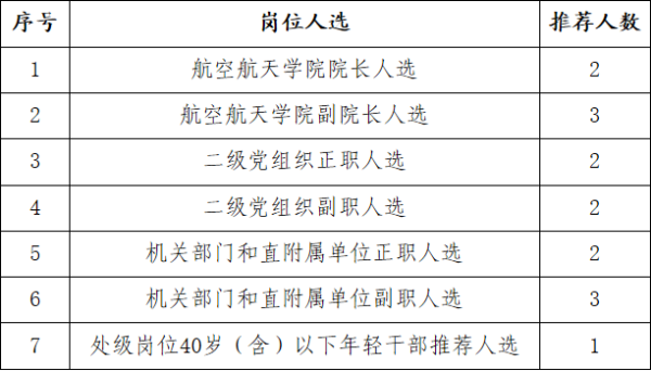 按照学校党委部署,学校中层领导干部换届与调整民主推荐工作组定于2018年9月13日(周四)到航空航天学院进行民主推荐工作,现预告如下: