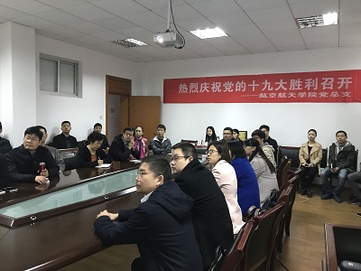 10月18日,为学习中国共产党第十九次全国代表大会精神,提高师生的党性修养和政治觉悟,航空航天学院组织全体教师和学生党员在学院会议室收看党的十九大开幕会。